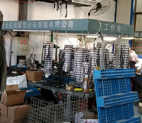 下圖為億諾工作人員在爬架葫蘆電機生產車間...